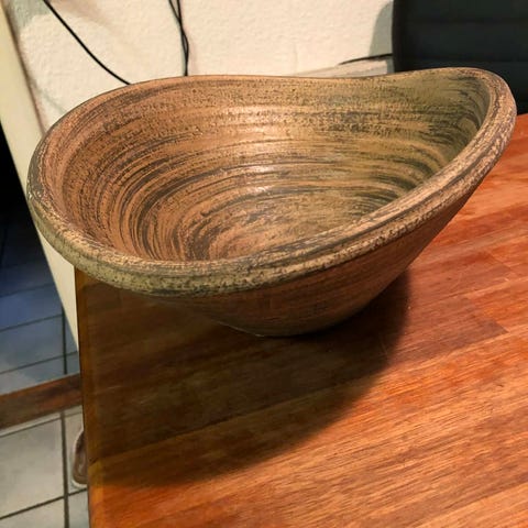 Rigtig smuk emalje oval skål med huller hele vejen rundt