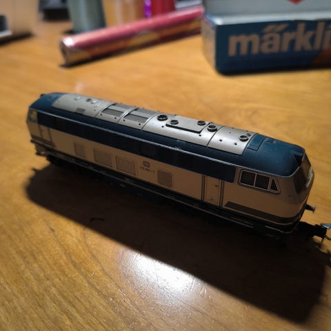 Det er et Märklin H0 startsæt med modeltog i skala 1:87.