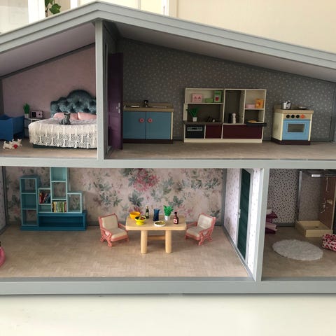 Smukt og moderne dukkehus med åbent design og flere rum.