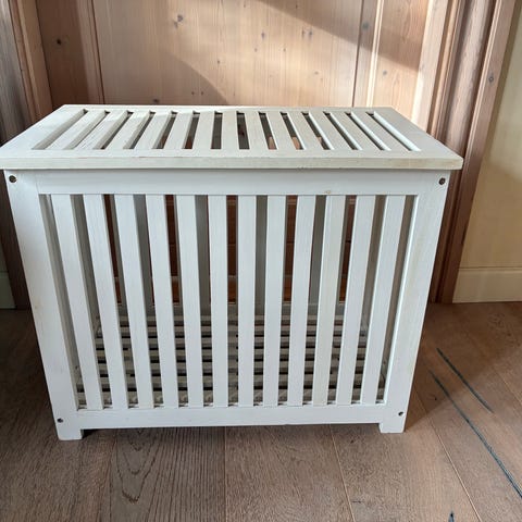 Vasketøjskurv i sort-malet træ