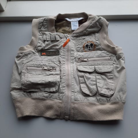 Hjemmestyret Mickey Mouse bukser. Rød med gule knapper. Dertil pandebånd med Mickey mouse-øre, sort næse og hvide Mickey mouse-handsker. Brugt af dreng på 6-8 år.