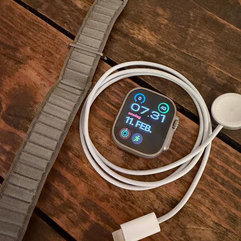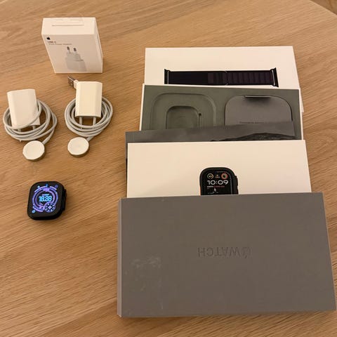Meget velholdt Apple Watch Ultra 2 titanium smartwatch med sort rem. Skambud ignoreres!