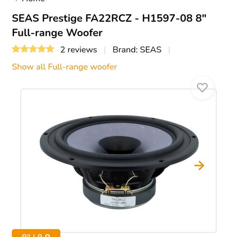 Hej. Jeg sælger disse super vellydende bas/mellemtone enheder. Fejler intet. Brugt i flere af troels gravesen højtalere.Se data på seas.no
