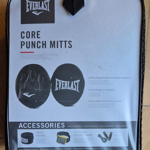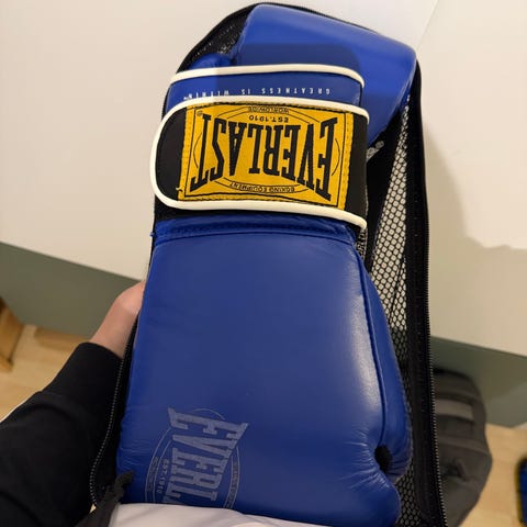 Everlast Elite boksehandsker i størrelse 12 oz. Handskerne er røde og sorte og designet til brug ved boksetræning. Kun brugt få gange af min datter. Er nok en str. small. Materialet og designet sikrer komfort og beskyttelse under træning. Nypris 500 kr