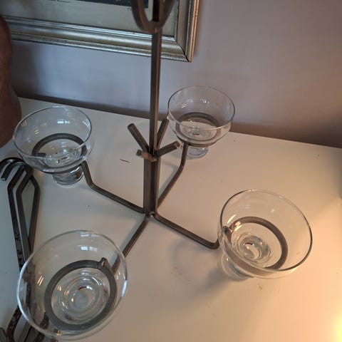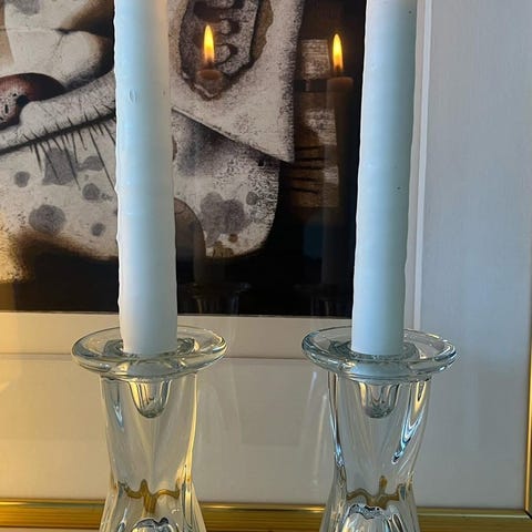 Der er to lysestager. Den ene en en. Y mindre end den anden.