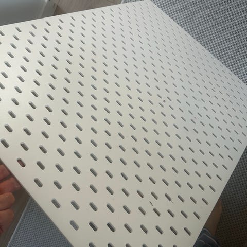 IKEA skådis møbel tilbehør bestående af forskellige kroge og beholdere, designet til opbevaring og organisering.