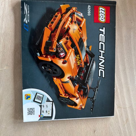 LEGO Technic Bil model i rød med detaljerede funktioner og bevægelige dele. Modellen er konstrueret af LEGO-klodser og tilhører Technic-serien, kendt for teknisk avancerede byggeprojekter. Der kan bygges to modeller med det Lego der er i æsken.