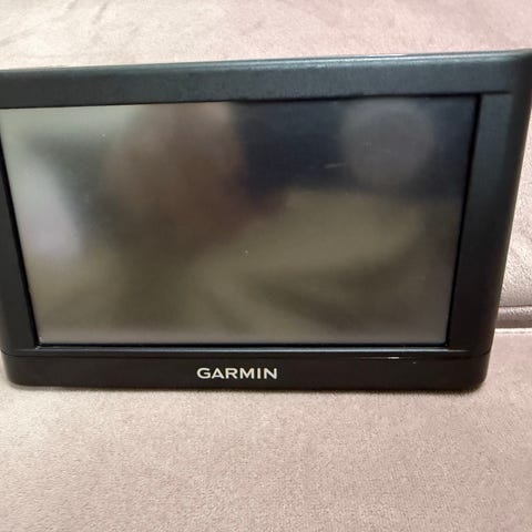 Garmin GPS navigation enhed med farveskærm, touchscreen interface og funktioner til søgning og visning af kort. Enheden er designet til brug i bil og hjælper med rutevejledning og navigation.