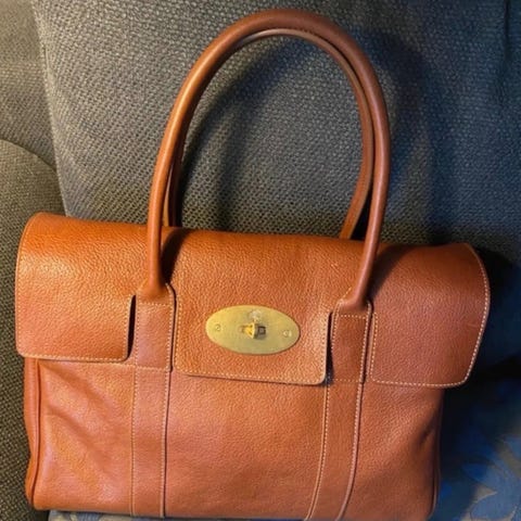 Mulberry læder taske til kvinde i beige farve. Tasken har flere rum og en guldfarvet spænde foran. Den er designet med en topstrop og detaljer i metal. Velegnet til daglig brug.