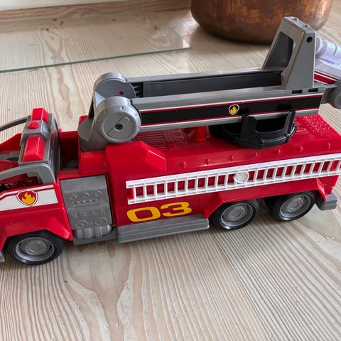 Marshall's robuste brandbil er udstyret med dinosaur-inspirerede detaljer, et arbejdsredskab og store hjul til at erobre ethvert terræn.