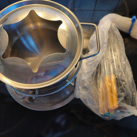 Fondue sæt i rustfrit stål med 6 stk gafler