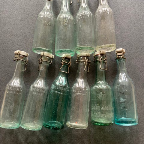 Maglekilde & Frederiksberg Brøndanstalt glasflaske med patent prop.