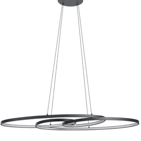 Albiona ringformet LED-pendellampe i sort - perfekt til køkkener og spisestuer Albiona er en lyskilde, der med sin moderne, minimalistiske ringform ser særligt stilfuld ud i moderne interiører. Pendellampen strækker sig ud i rummet på tre filigrane ledninger og domineres visuelt af den sorte metalring, på hvis underside de lyse, effektive LED'er er indlejret og giver et varmhvidt, hyggeligt skær. Stilfuldt design med et særligt udtryk!