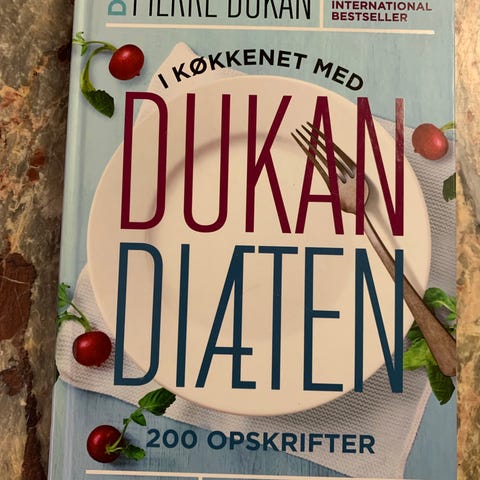 Dukan Diæten kogebog med 200 opskrifter. Bogen indeholder opskrifter og vejledning til Dukan-diæten, der fokuserer på proteinrig kost. Bogen er skrevet på dansk og indeholder information om diætens principper og anvendelse.