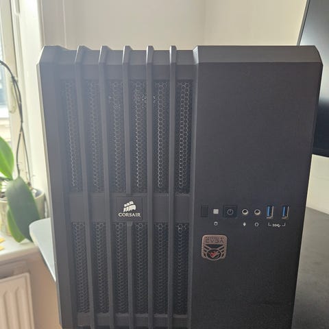 Pc'en er brugt men fejler intet og kører stadig godt den kan køre de fleste spil og mange af dem ved høj grafik