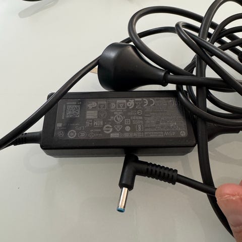 120W (19.5V / 6.15A) med stor rund stik 7.4 mm med centerpin.