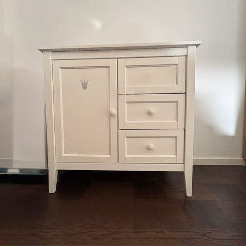 Selve skuffegrebene har slid på sig, men de kan evt fjernes og så kan man sætte nye på og sætte sit eget præg.