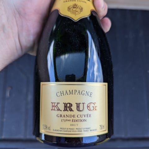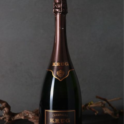 Krug Champagne i standardflaske. Produktets detaljer om størrelse, farve og materiale er ikke angivet.