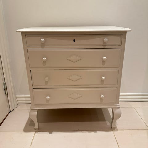 Fine klassiske kommoder. Fremstår nymalet i maling fra Jotun. Højde 77 cm, bredde 69 cm og dybde 40 cm.