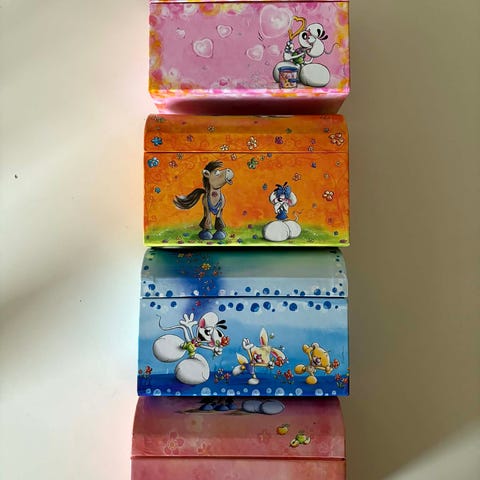 Mange af papirerne kommer i flere eksemplarer, og derudover er der en masse småtterier (viskelæder, postkort, samlekort, frimærke, klistermærker, mini-notesbøger m.m.)