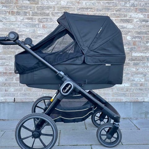 Der medfølger myggenet (som kan lynes på både barnevognsoverdelen og klapvognsoverdelen), regnslag, org. madresse, barnevognssele og lagner hvis det ønskes.