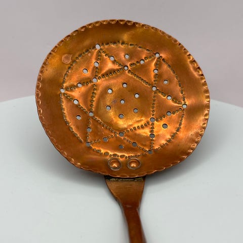 En virkelig dekorativ gammel handskeform udført i kobber med en flot patina.