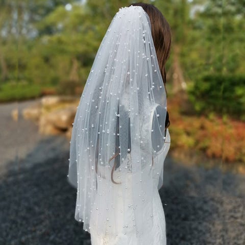 Nyt kvalitetsbrudeslør med perler og perlebesætning ved hårkammen.