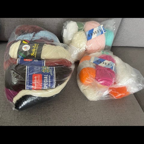 Garn, 3 bdt. sælges samlet for 65 kr... se foto.