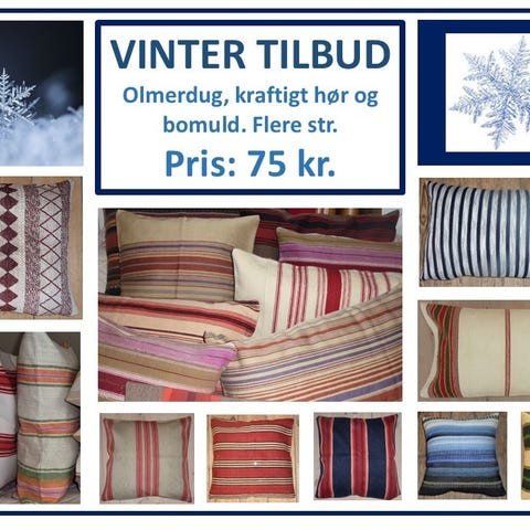 Pudebetræk i olmerdug, bolster og stribet stof. Nye, vintage og antikke.