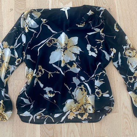 Lækker let bluse med flot effekt på ryggen i dejligt og behagelige stof. Str. 40. God facon og lækker at have på. Vaskes, hænges op og klar til brug igen.