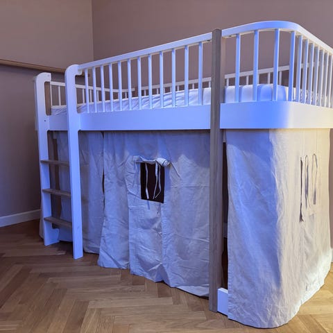 Oliver furniture Wood Original Halvhøj seng I hvid. Der er synlige brugsspor (sengen er ca. 5 år) som ses på billederne, men ellers i fin stand.