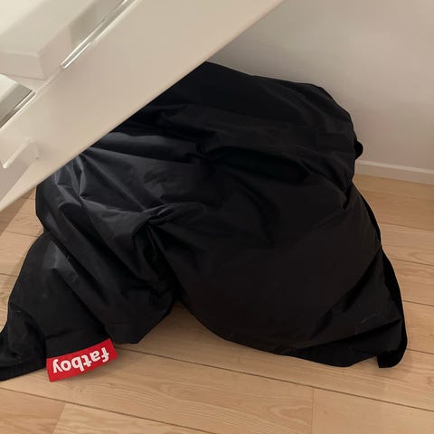 Original Fatboy sækkestol i sort intakt nylon. Yderst komfortabel.