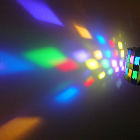 Udstyret med 156 effekt-LED'er (Rød=48 + Grøn=36 + Blå=36 + Hvid=36):