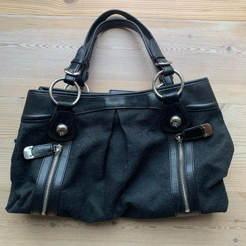 DKNY stof taske til kvinder. Tasken er lavet af stofmateriale og er designet til kvindelig brug. Den har flere rum og lommer til opbevaring af personlige ejendele.