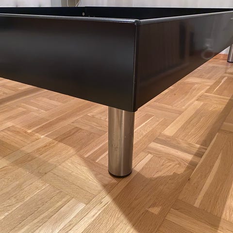 Rammen har en del slid og vil med fordel kunne males på ny, hvis man ønsker et mere friskt udtryk. Kvaliteten og konstruktionen er dog i top og rammen er stabil og fuldt funktionel.