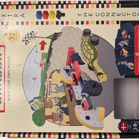Fint sæt med æske, er brugt, men stadig godt, det hele er der på nær 4 af de små klodser og en lille pind i den størrelse med det sidste billede