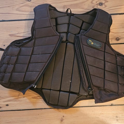 Riders Company Flex Pro rygskjold i størrelse XXS. Vesten er sort og designet til at give beskyttelse ved ridning. Den opfylder sikkerhedsstandarden EN 1621-2:2014 og har CE-mærkning. Materialet er fleksibelt for optimal bevægelsesfrihed.