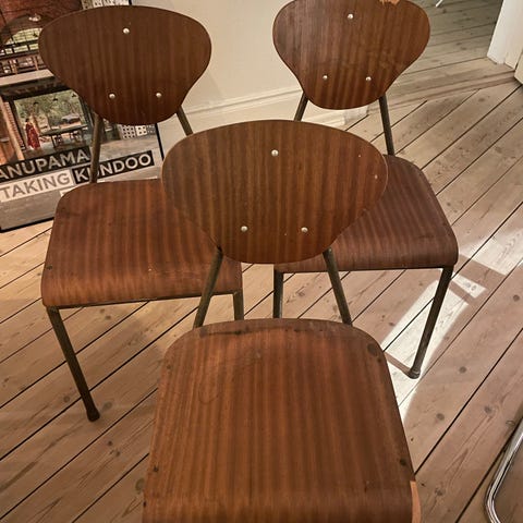 Sælger vintage skolestole, som er blevet istandsat og fremstår i rigtig fin stand. Klassisk look med masser af charme – perfekte som spisebordsstole, til kontoret eller som ekstra