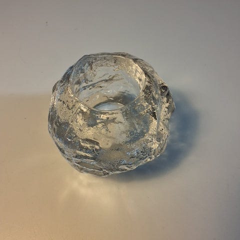 Dekorativ lysestage i glas (fattigmandssølv).
