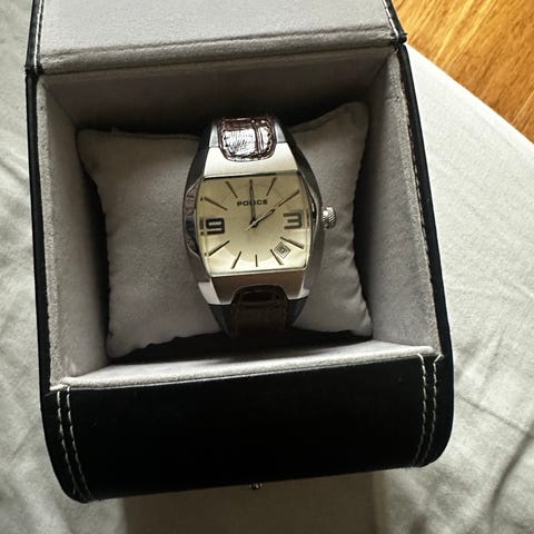 Sælger dette Police 12777J herreur. Uret er brugt, men i god stand, og kommer med original æske. Bagsiden viser modelnummer/serienummer, så køber kan se, det er ægte. Sort stål, klassisk og stilrent – velegnet til hverdag og fest.