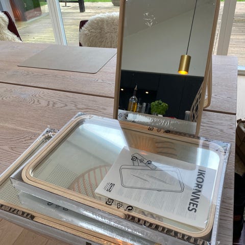 IKEA spejl med ramme. Spejlet har en enkel og funktionel ramme, som kan stå frit på gulvet. Velegnet til brug i soveværelse eller entré.