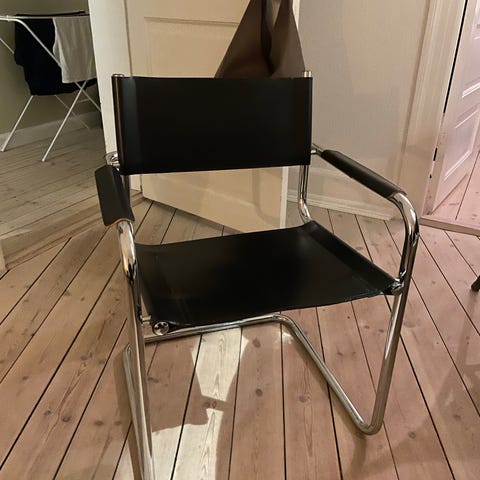 2 stk. Frisvinger stole i krom med sort læder. Prisen er Per stk.