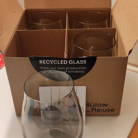 6 glas fra Pernille Bülow- aldrig brugt - 6 forskellige farver - højde 10 cm - diameter 7,5 cm sælges samlet for 275kr