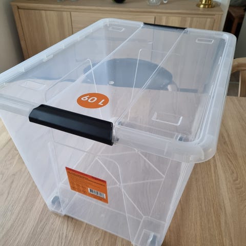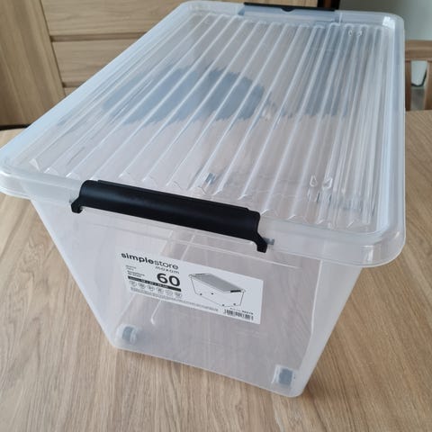 Opbevaringskasse 52 liter. Se billede for mål på kassen.