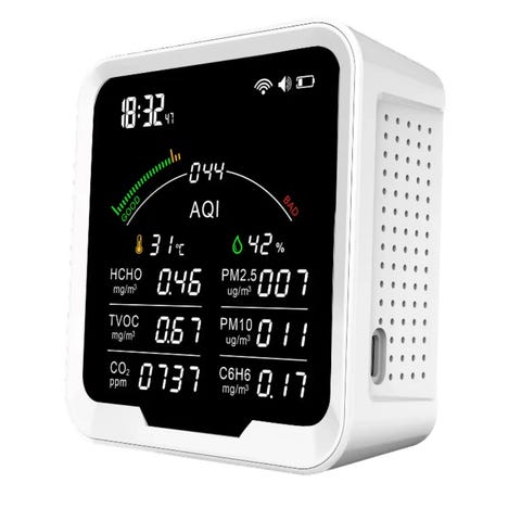Stor professionel Luft-kvalitets-måler fra Hammer Electronics. Måler CO2-indholdet i luften (PPM), samt temperatur og den relative luftfugtighed (RH). Med Smiley-funktion, der enkelt viser niveauet.