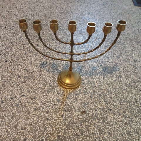 Vintage 7-armet messingmenorah – tung, detaljeret og i virkelig flot kvalitet