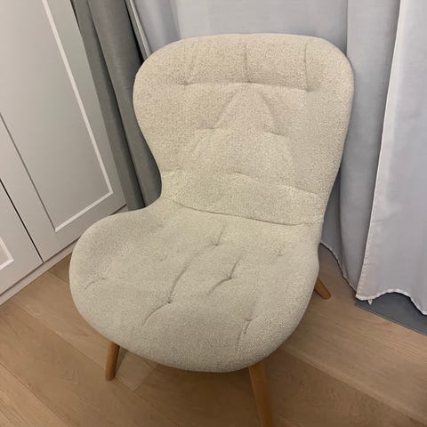 Flot lænestol fra Ilva. Modellen hedder Ally. Stolen har stået i et ekstra værelse og derfor ikke rigtig brugt. Ikke ryger og ingen husdyr i husstanden. Sidde højden er 43 cm. Dejlig behagelig stol man sidder rigtig godt i, men desværre har vi ikke plads til den længere. Købspris kr. 2.995,-