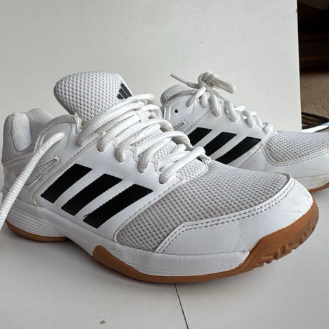 Fejlkøb - kun brugt indenfor to gange. Str. 45. ASICS Gel-Rocket indendørs sko i sort, hvid og orange. Skoene har en gummisål designet til indendørs brug og et meshmateriale, der giver åndbarhed. Skoene er udstyret med GEL-dæmpningsteknologi for øget komfort.