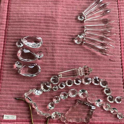 lysekroneprismer i facetteret glas samlet. 18 styk Forskellige længder.