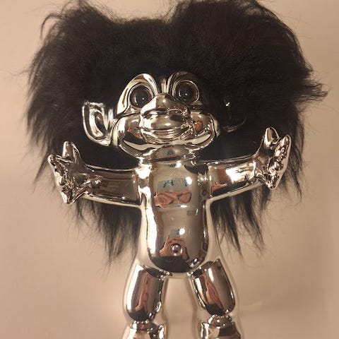 Lykketrold, Udført af oliebehandlet egetræ. med rulleøjne